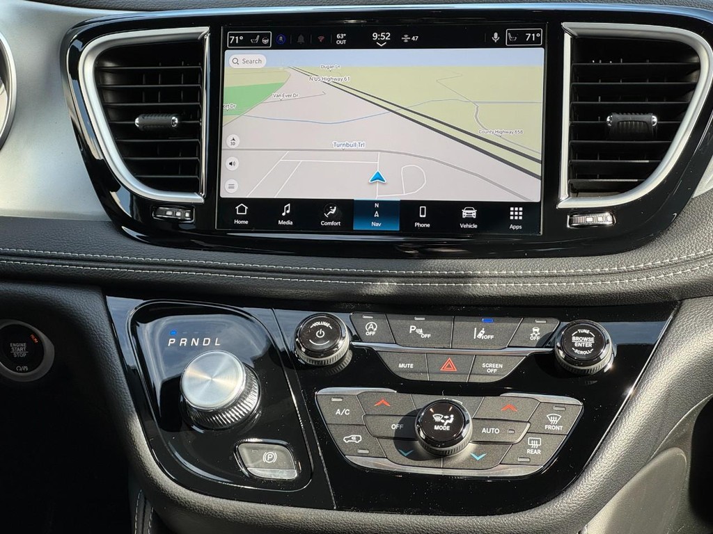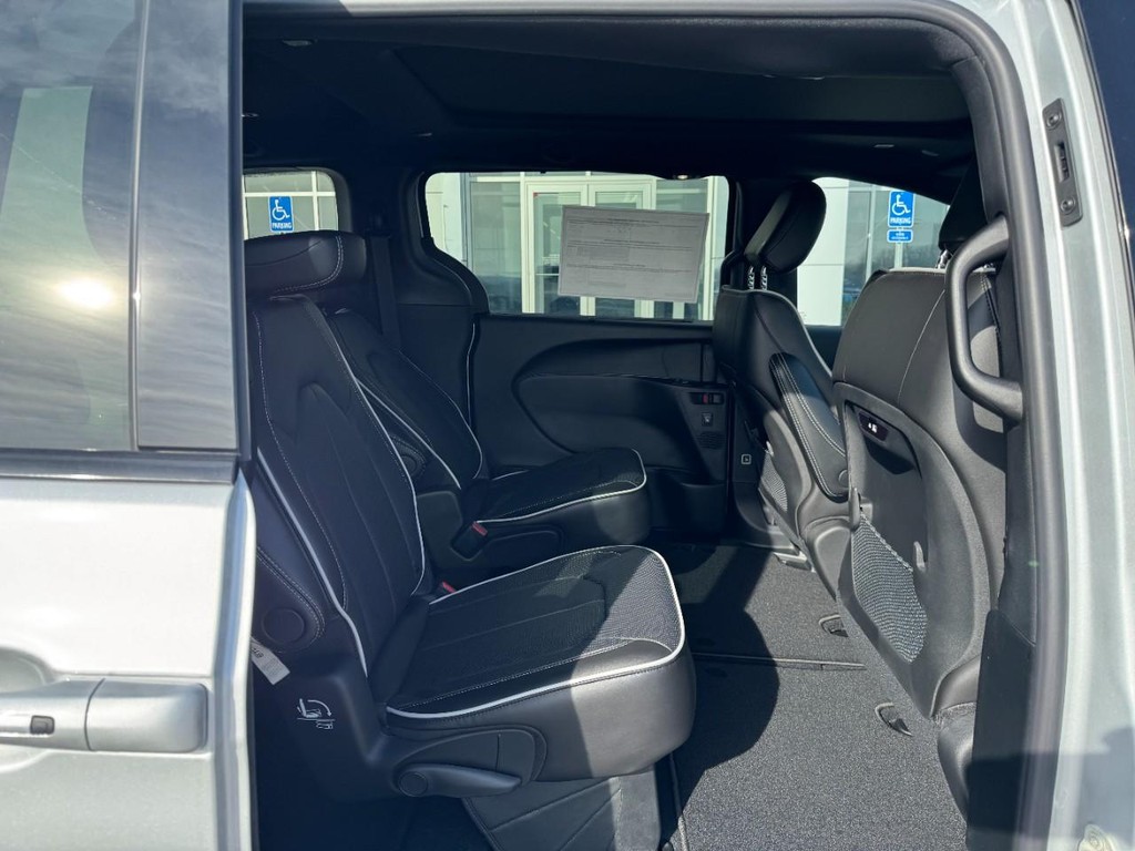 Leather heated memory front bucket seats, 360 surround view back-up camera, navigation, panoramic roof, remote start, 3rd row seats, proximity key for doors and push button start, voice activated dual zone front automatic A/C, rear HVAC with separate controls, 4G Lte Wi-Fi hot spot mobile hotspot internet access, 3.6L V6 24V VVT UPG I with ESS, 9-Speed 948TE automatic, FWD 18" painted aluminum wheels, 7 person seating capacity, power sliding doors, power liftgate rear cargo access, power with tilt down heated side mirrors, lip spoiler, Uconnect 5 NAV with 1.0" display, AM/FM/HD/Satellite with seek-scan : clock / speed compensated volume control / steering wheel controls / voice activation and radio data system, 13 Alpine speakers, wireless streaming, MP3 player, heated technoleather leatherette steering wheel with mounted audio and cruise control, deep tinted glass, ABS and driveline traction control, blind spot detection blind spot, parksense with stop rear parking sensors, forward collision warning-plus and rear cross path detection, dual front and side impact air bags, front anti roll bars, tire specific low tire pressure warning, rear child safety locks and side impact beams. Thanks for looking and we hope to hear from you soon.. Sale prices are based on all applicable Midwest Business Center incentives including Stellantis Financial Bonus Cash when applicable and Stellantis Loyalty Programs. Pricing includes Behlmann Finance incentives. Pricing not compatible with incentivized rates. Tax, Title, License extra. ($399 administrative fee) Offer ends 04/30/2026. Every attempt is made ensure pricing accuracy; Typographical error may occur. See Salesperson for more details.